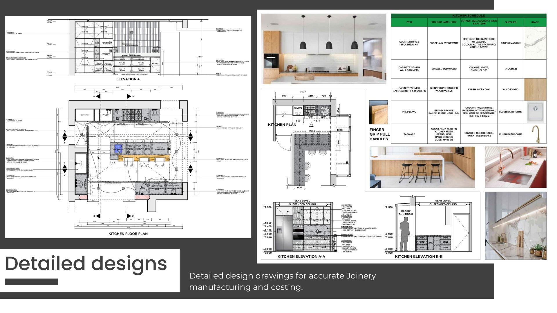 - Interior joinery, cabinetry, and detailed production drawings